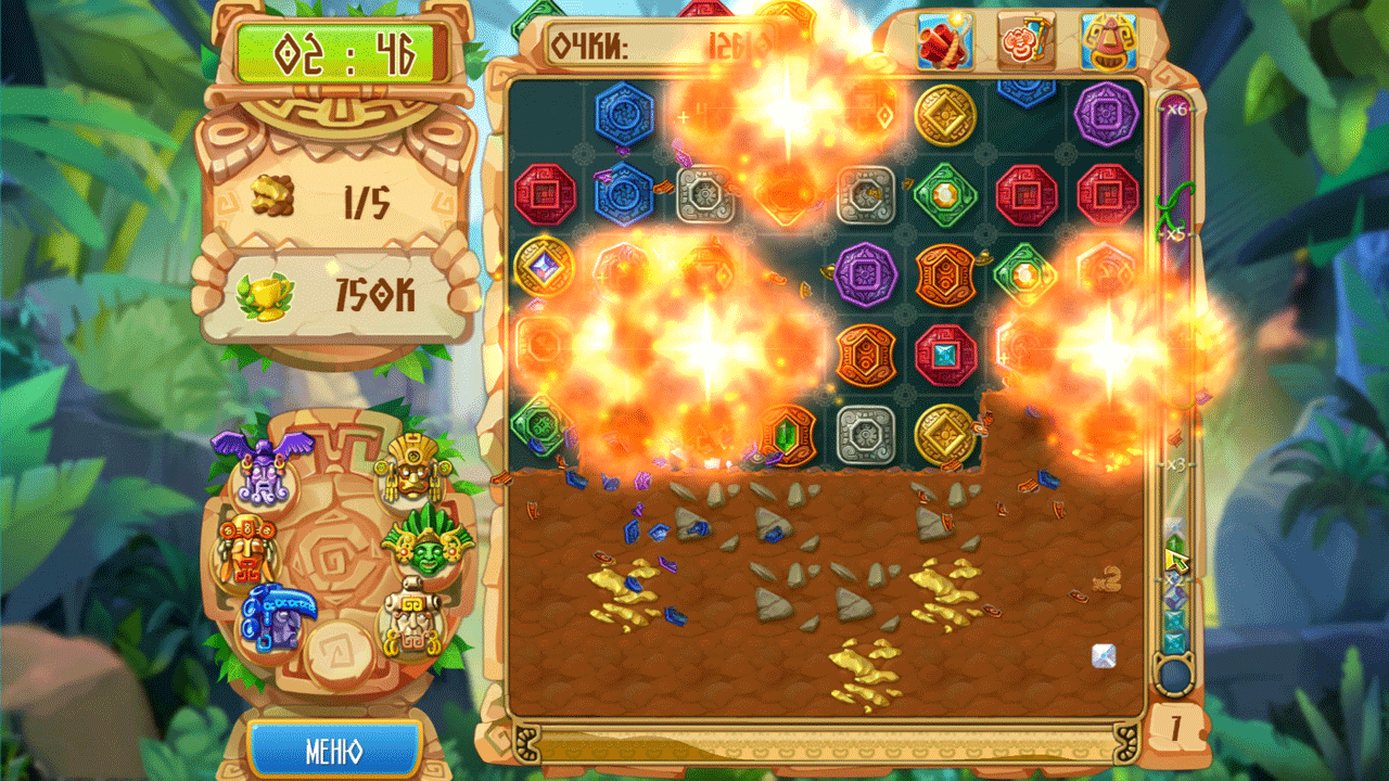 На каждое задание отводится строго определенное время, однако его выполнение можно облегчить, используя различные тотемы и мощь древних индейских богов. Чтобы получить их, вам нужно собирать на игровом поле кристаллы – именно они являются основным средством для улучшения характеристик вашей экспедиции. Кристаллы можно заработать в игре, получить в качестве награды за особые достижения, либо выиграть в особой слот-машине.
