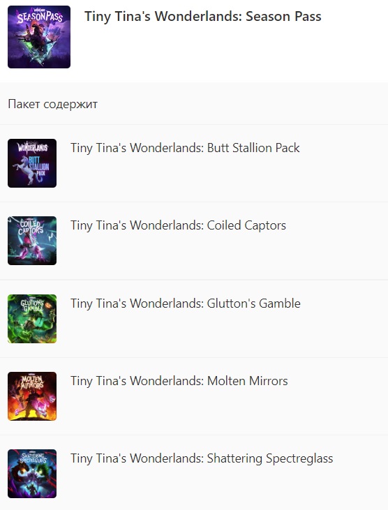 Погрузитесь в новые невероятные приключения Tiny Tina´s Wonderlands с Сезонным абонементом! Исследуйте 4 разных подземелья и покорите скрывающихся в них грозных боссов. Испытайте новое оружие и снаряжение, попробуйте себя в роли дополнительного седьмого класса, добавленного вместе с четвертым подземельем, и преобразите свой внешний вид с помощью набора «Жопец»!