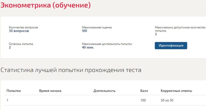 Эконометрика тесты Синергия МФПУ МТИ МОИ МосАП МосТех (ответы 100 баллов Отлично)