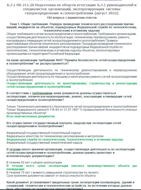 Вопросы с ответами к курсам ОКС-Олимп Б.7.1 ПБ 211.20 (август 2022) Подготовка по области аттестации Б.7.1 руководителей и специалистов организаций, эксплуатирующих системы газораспределения и газопотребления