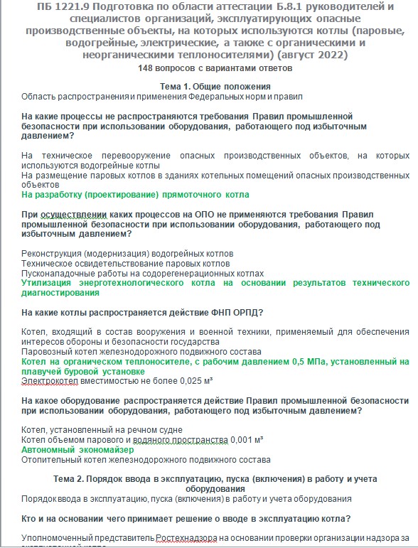 Вопросы с ответами к курсам ОКС-Олимп Б.8.1 ПБ 1221.9 (август 2022) Подготовка по области аттестации Б.8.1 руководителей и специалистов организаций, эксплуатирующих опасные производственные объекты, на которых используются котлы