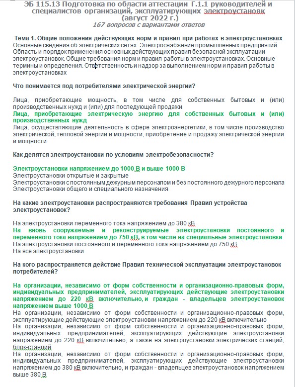 Вопросы с ответами к курсам ОКС-Олимп Г 1.1 ЭБ 115.13 (август 2022) Подготовка и аттестация руководителей и специалистов организаций, осуществляющих эксплуатацию электроустановок