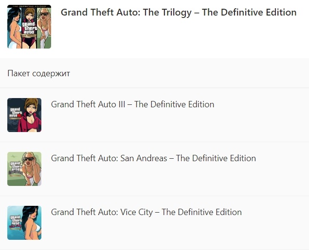 Grand Theft Auto: The Trilogy – The Definitive Edition включает: