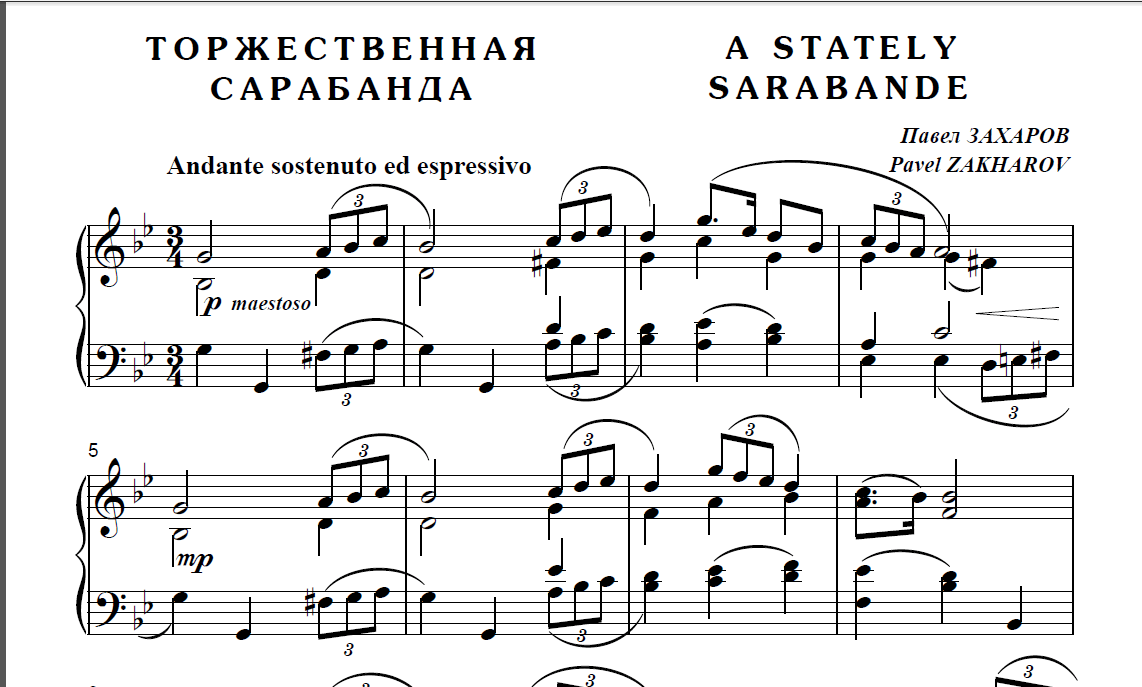 "Торжественная сарабанда" для ф-но соло, ноты,