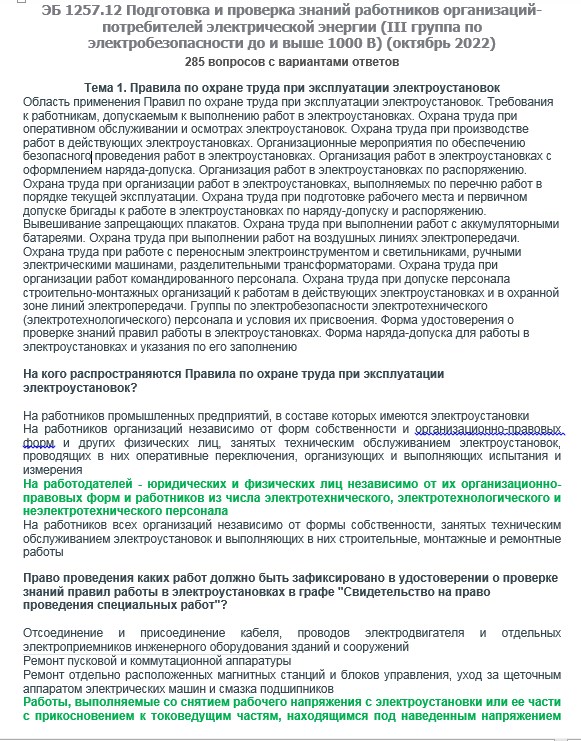 Вопросы с ответами к курсам ОКС-Олимп ЭБ 1257.12 (октябрь 2022) Подготовка и проверка знаний работников организаций-потребителей электрической энергии (III группа до и выше 1000В)