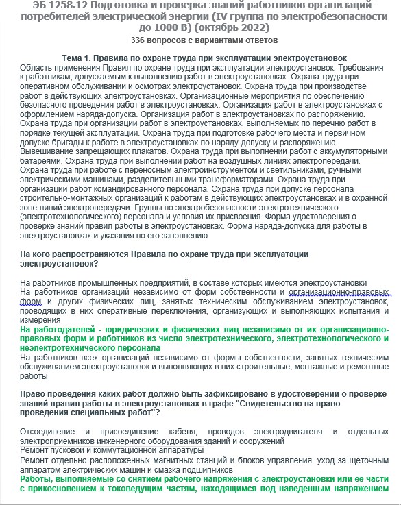 Вопросы с ответами к курсам ОКС-Олимп ЭБ 1258.12 (октябрь 2022) Подготовка и проверка знаний работников организаций-потребителей электрической энергии (IV группа до 1000В)