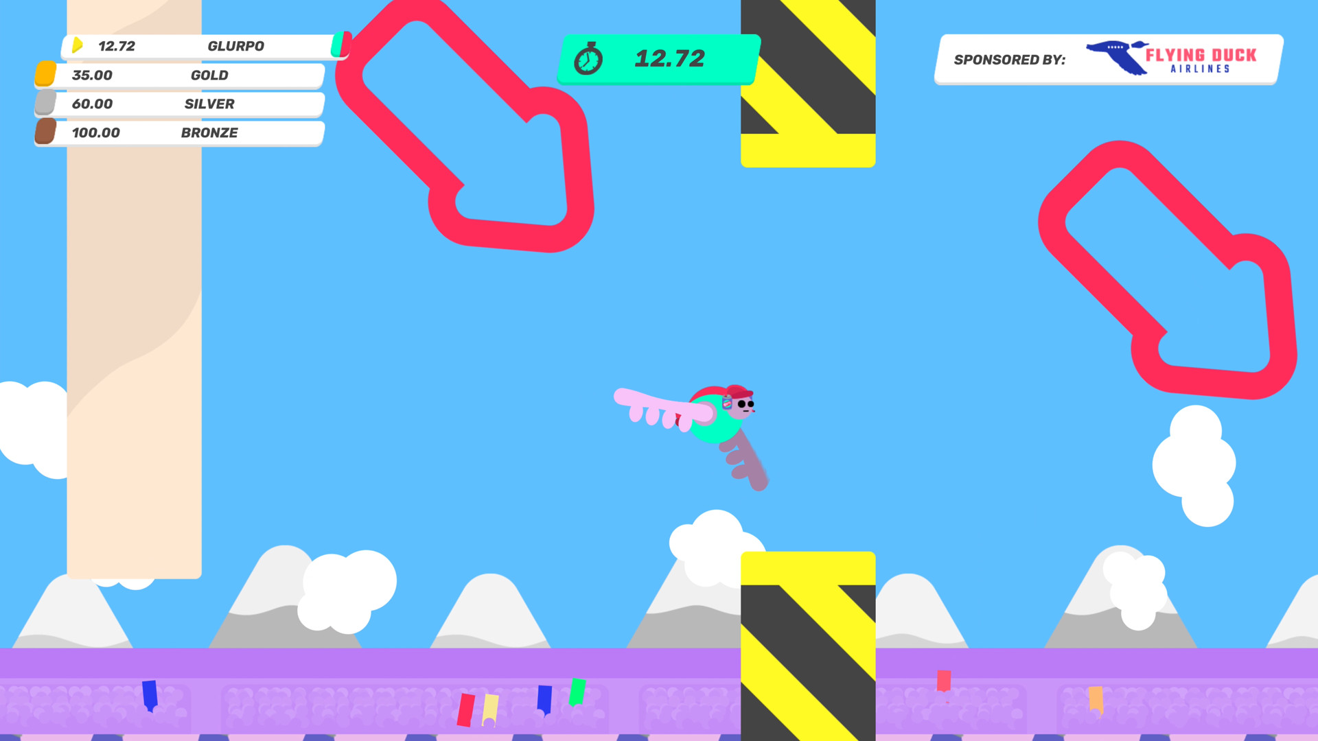 Бегай, прыгай, метай снаряды в улётных соревнованиях, при этом с тобой может состязаться до 20 игроков в локальном групповом режиме! Брось себе вызов в одиночном режиме или выбейся в лидеры в серии испытаний. Смотри на повторах, как упражняются твои друзья, или оттачивай свое атлетическое мастерство ради новых рекордов.Сплошная годнота!Игру можно проходить повторно сколько угодно раз, ведь в ней почти бесконечное количество комбинации событий и спонсоров. Только привыкнешь к событию — а тебя уже руки-лазеры!Это я! Посмотрите на меня!Болельщики будут стоять на ушах — всплеск эмоций гарантирован! Состязания не останавливаются никогда, ведь прямо во время игры можно добавлять игроков и убирать их или даже переносить ход. Всё что надо для игры — это контроллер.Будь на стилеКаждая рука атлета управляется по отдельности с помощью джойстиков. Каждой рукой можно хвататься... ну и всё. Покажи всем свой неповторимый стиль игры и уникальную технику.Ключевые особенности: Локальный групповой режим, где может участвовать от 2 до 20 игроков