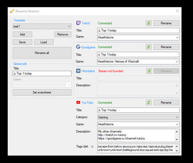 Преимуществом является то, что Вы редактируете описание всех трансляций в одном окне, без необходимости заходить на сами сайты.