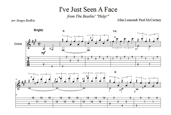 Аранжировка для гитары песни The Beatles из альбома "Help!"
