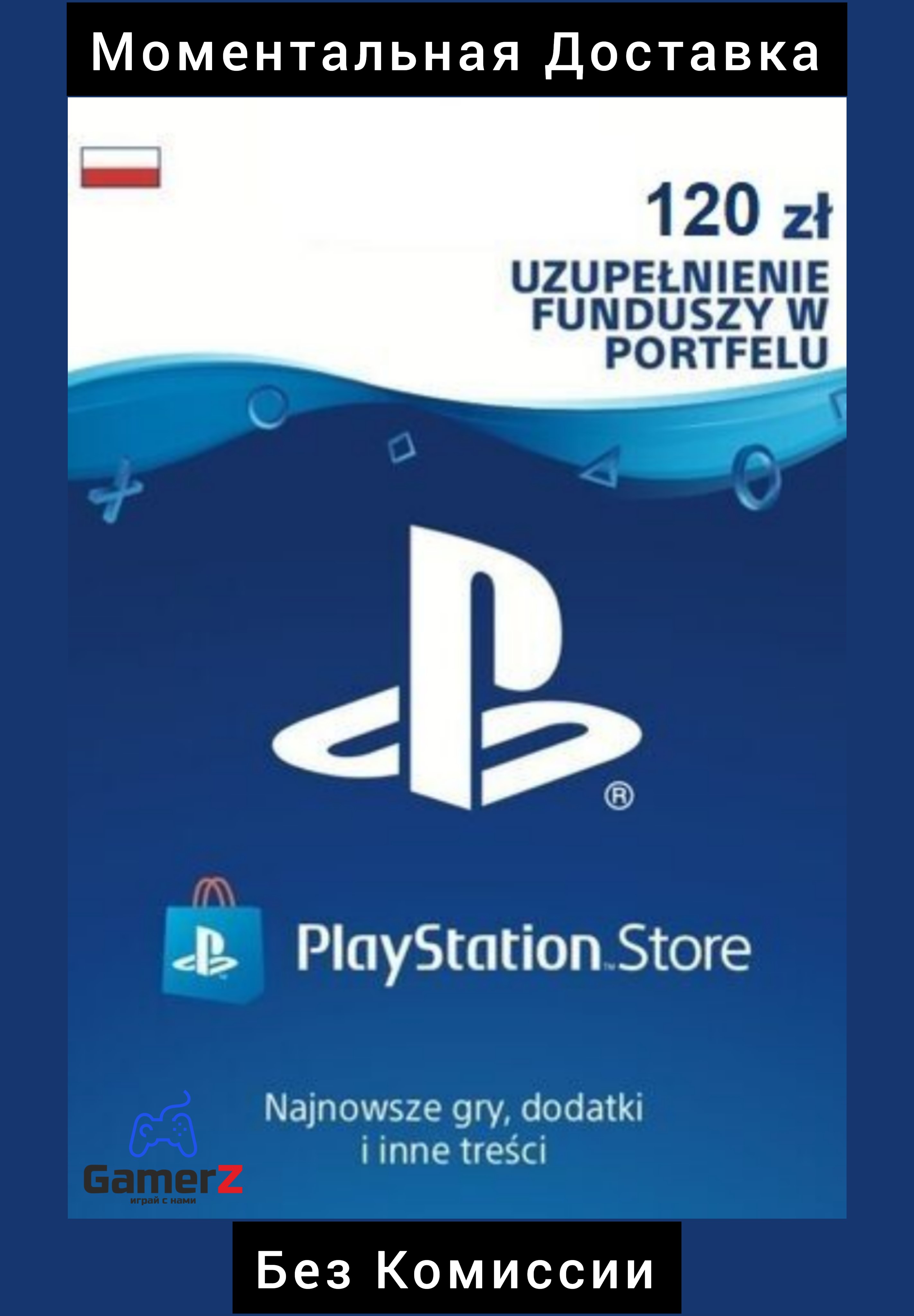 Купите карту PlayStation Network Card 120 PLN – это идеальный подарок для всех, кто любит играть!. Выбирайте из тысяч игр, от инди-игр до высокобюджетных проектов, дополнений, внутриигровых кредитов, сезонных пропусков, фильмов и многого другого. Откройте для себя мир возможностей с предоплаченными картами, которые можно погасить в PlayStation Store – самой большой библиотеке игр PlayStation в мире.