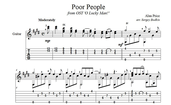 Аранжировка для гитары песни Алана Прайса из кинофильма "О, счастливчик!"