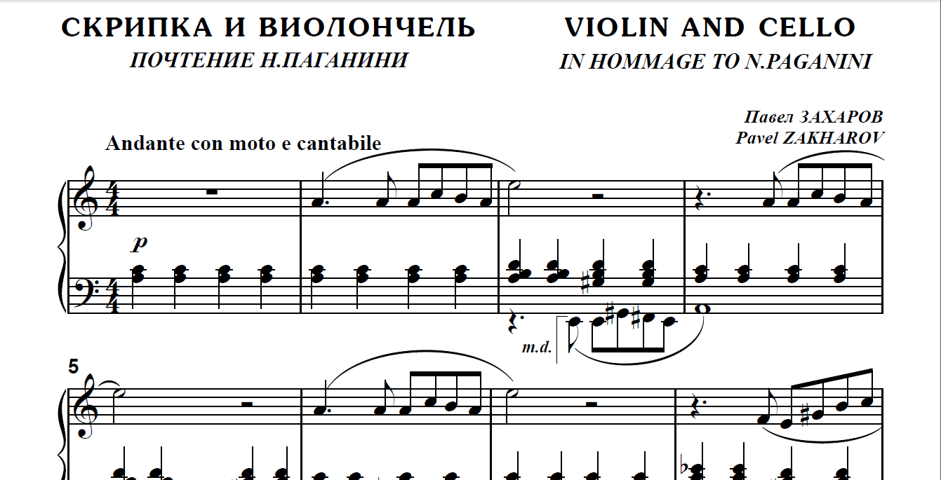 "Скрипка и виолончель" (по Н.Паганини), для ф-но соло, ноты,