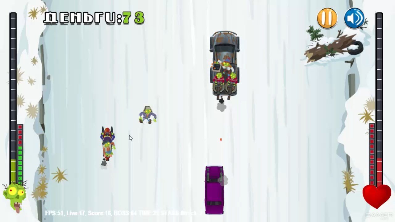 ZombieCarz это скроллер с крутой рисованной графикой и динамичным геймплеем!