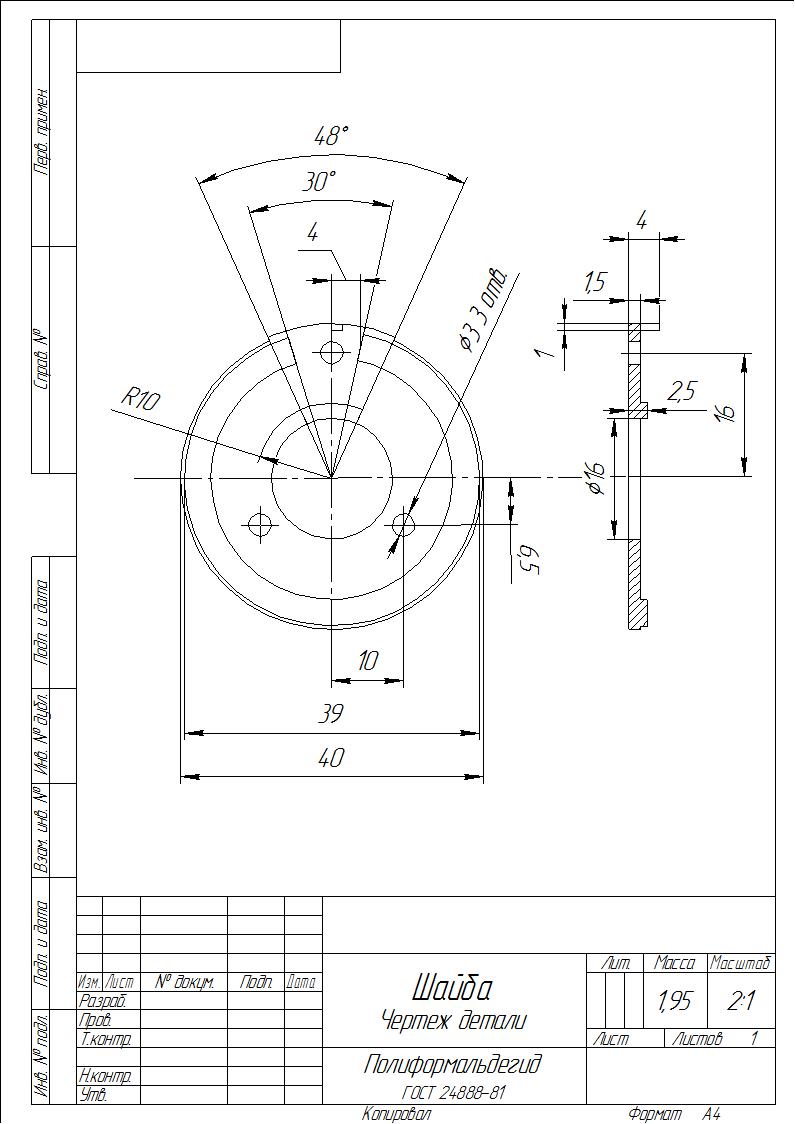 - Шайба. Чертеж детали (КОМПАС-3D)