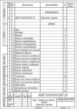 - Пресс-форма на изделие "Шайба". Сборочный чертеж (КОМПАС-3D)
