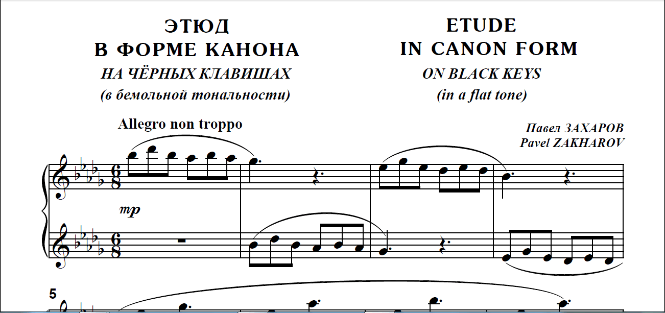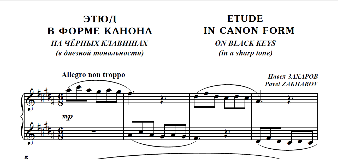 2. Нотный файл "Этюд в форме канона" на чёрных клавишах в ДИЕЗНОЙ тональности