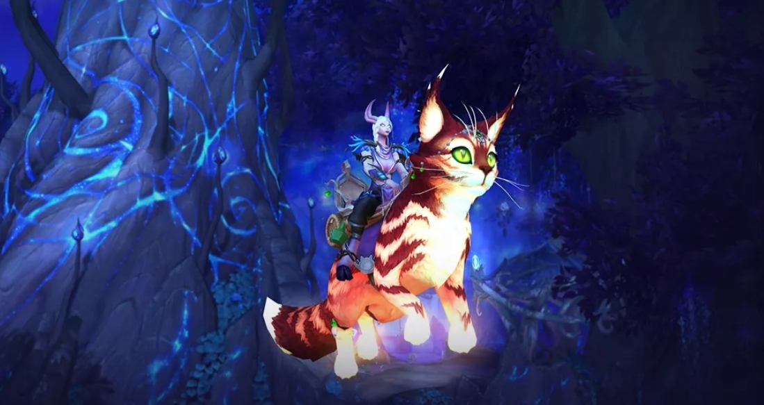 Этот магический кот с изумрудно-зелеными глазами и лисьим хвостом с легкостью довезет вас куда угодно. Но больше всего на Азероте ему нравятся те земли, где солнечные лучи пронзают пожелтевшую к осени листву деревьев, особенно если можно устроить привал у потрескивающего костра.