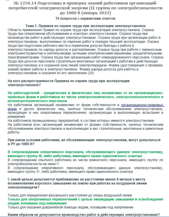 Вопросы с ответами к курсам ОКС-Олимп ЭБ 1254.14 (январь 2023) Подготовка и проверка знаний работников организаций-потребителей электрической энергии (II группа до 1000В)