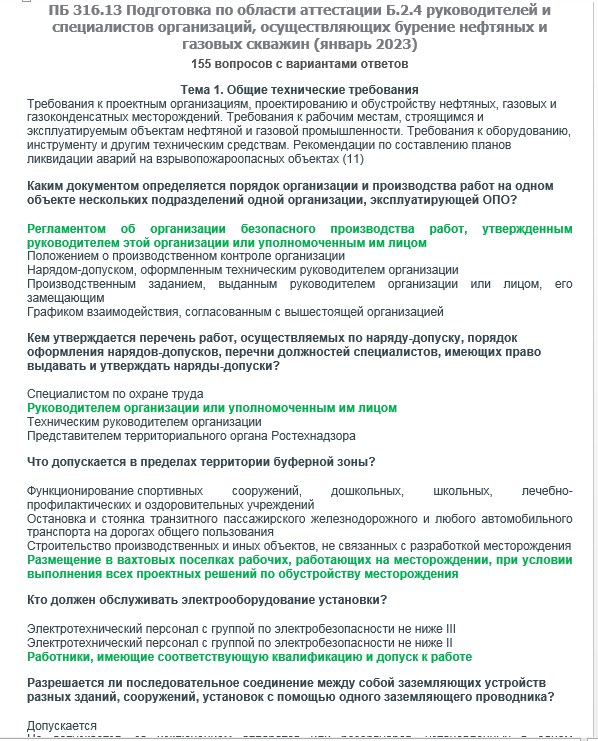Вопросы с ответами к курсам ОКС-Олимп Б.2.4 ПБ 316.13 (январь 2023) Подготовка руководителей и специалистов организаций, осуществляющих строительство нефтяных и газовых скважин