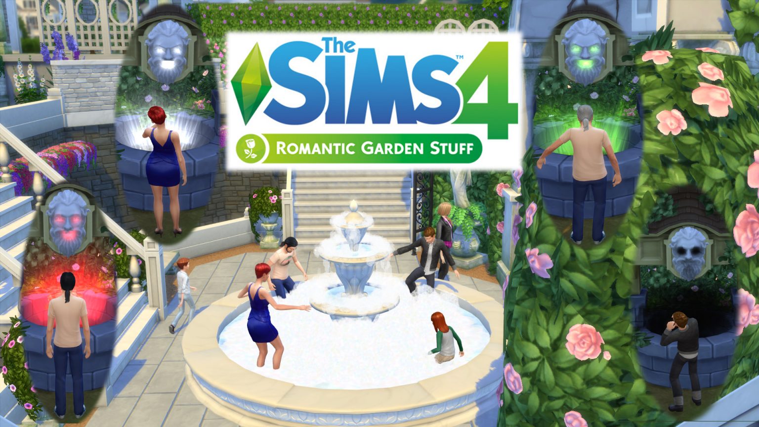 Всплеск в фонтане. Этот великолепный центральный элемент сада также является отличным местом, где ваши симы могут наслаждаться обществом друг друга. Чувствуете себя игривым? Прыгайте и плескайтесь, или добавьте мыло, чтобы весело провести время!