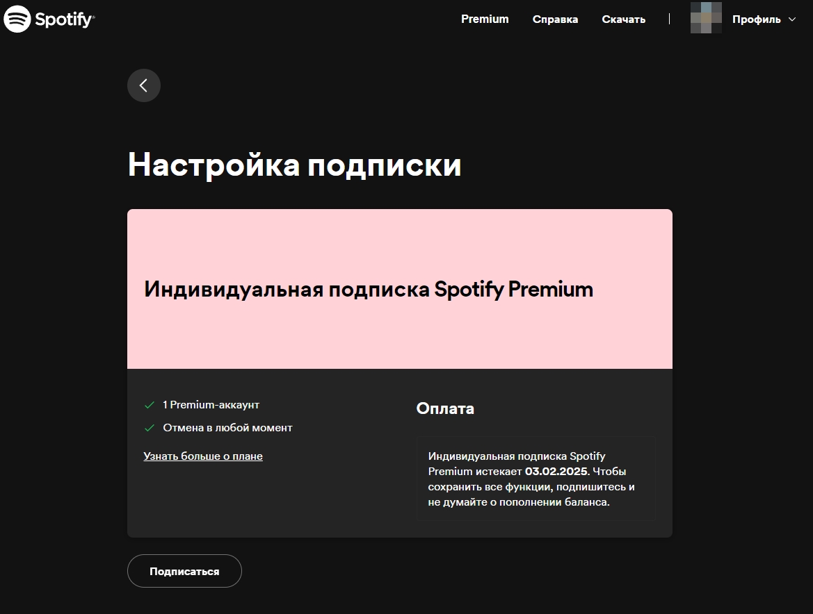 Улучшите свои музыкальные впечатления с помощью подписки Spotify Premium! Благодаря доступу к более чем 70 миллионам песен у вас никогда не закончится музыка для наслаждения.