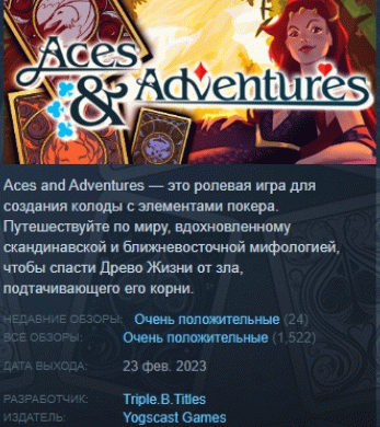 В основе Aces & Adventures уникальная комбинация традиционной карточной колоды и карт со специальными способностями. Вы собираете свою колоду и решаете, как ее использовать. Что вы выберите: расправиться с врагами при помощи заклинаний и атак, либо попытаться собрать сильные покерные комбинации и разбить противника одним ходом?