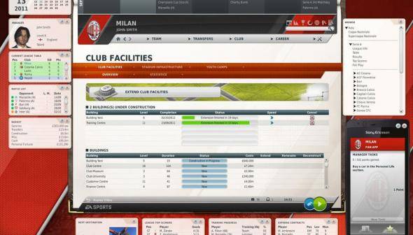 Можно более глубоко заняться развитием инфраструктуры клуба. В FIFA Manager 12 имеется порядка двадцати пяти сооружений, которые можно изменять по собственному желанию. На территории, которая подконтрольна вашему клубу, теперь можно разместить до трех стадионов с вместимостью до ста двадцати тысяч человек. Естественно, за всем этим богатством необходимо следить и время от времени проводить ремонтные работы.