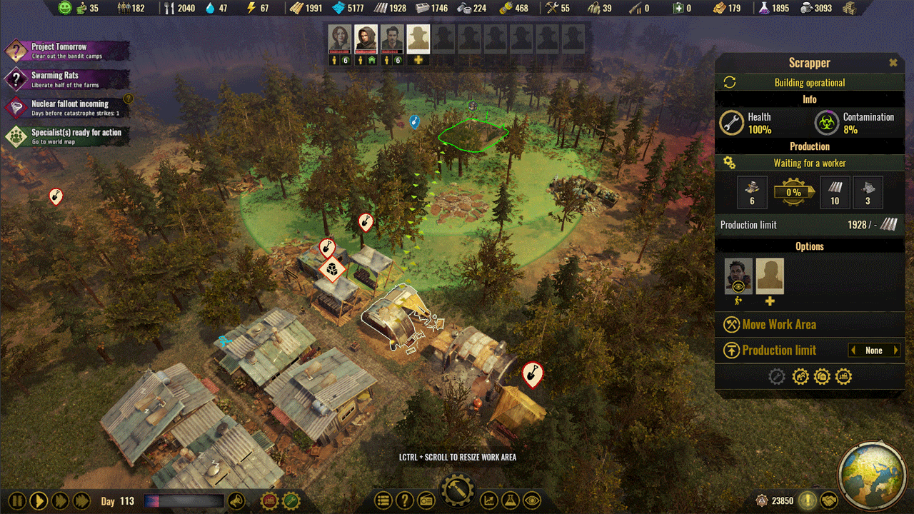 Наймите более 80 уникальных специалистов с различными навыками и стремлениями. Они помогут наладить в колонии производство и добычу необходимых ресурсов. Отправляйте их за ворота в исследовательские экспедиции, в походы за ресурсами и на сражения с бандитами.