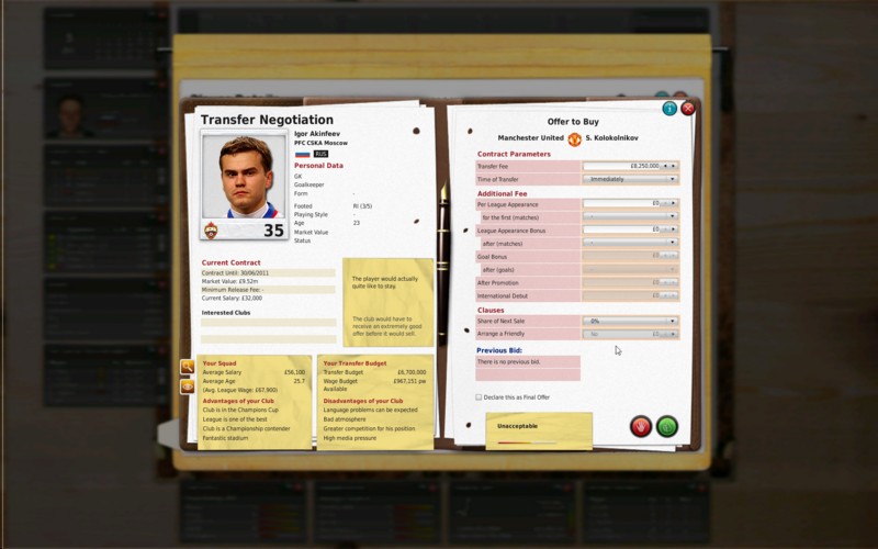 * Инфраструктура стадионов. Позаботьтесь обо всем: питании, оборудовании, общественном транспорте, информационном бюллетене и зонах для VIP-гостей, а также о камерах хранения. Оборудуйте свой стадион так, чтобы извлечь максимальную прибыль и удовлетворить болельщиков.