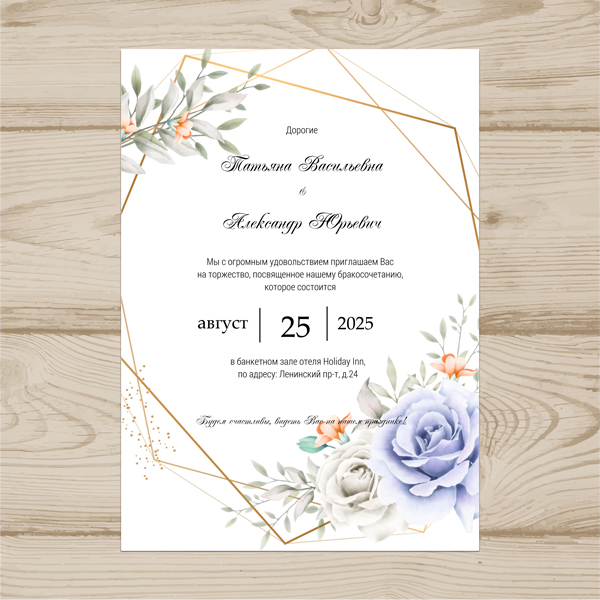Красивый шаблон приглашения на свадьбу в формате Microsoft Word c текстом,