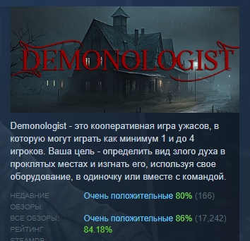 Demonologist - это кооперативная игра ужасов, в которую могут играть как минимум 1 и до 4 игроков. Ваша цель - определить вид злого духа в проклятых местах и изгнать его, используя свое оборудование, в одиночку или вместе с командой.