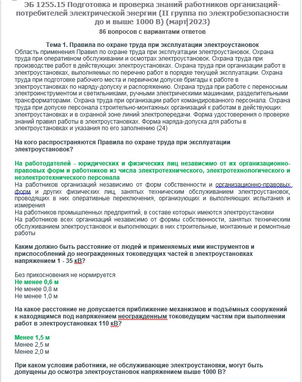 Вопросы с ответами к курсам ОКС-Олимп ЭБ 1255.15 (март 2023) Подготовка и проверка знаний работников организаций-потребителей электрической энергии (II группа до и выше 1000В)