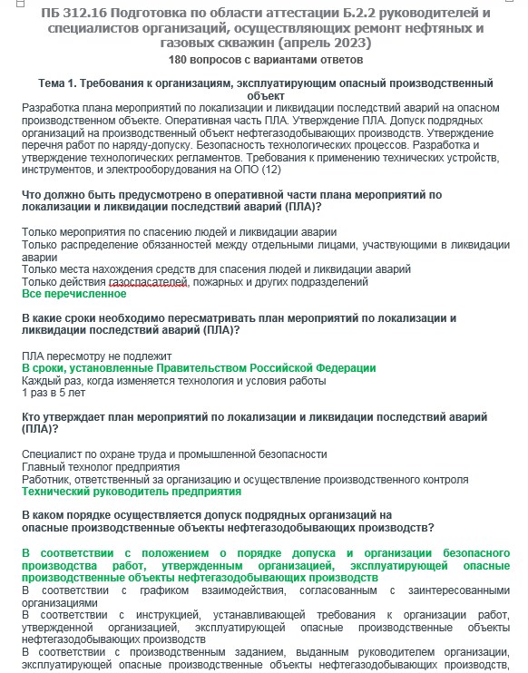 Вопросы с ответами к курсам ОКС-Олимп Б.2.2 ПБ 312.16 (апрель 2023) Подготовка и аттестация руководителей и специалистов организаций, осуществляющих ремонт нефтяных и газовых скважин