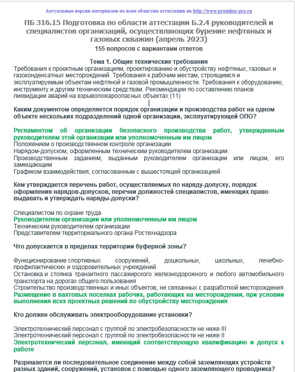 Вопросы с ответами к курсам ОКС-Олимп Б.2.4 ПБ 316.15 (апрель 2023) Подготовка руководителей и специалистов организаций, осуществляющих строительство нефтяных и газовых скважин