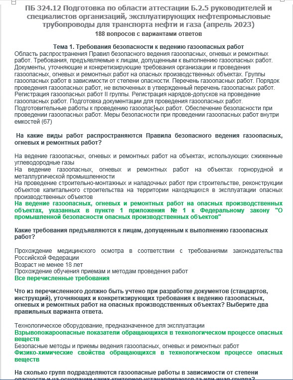 Вопросы с ответами к курсам ОКС-Олимп Б.2.5 ПБ 324.12 (апрель 2023) Подготовка и аттестация руководителей и специалистов организаций, эксплуатирующих нефтепромысловые трубопроводы для транспорта нефти и газа