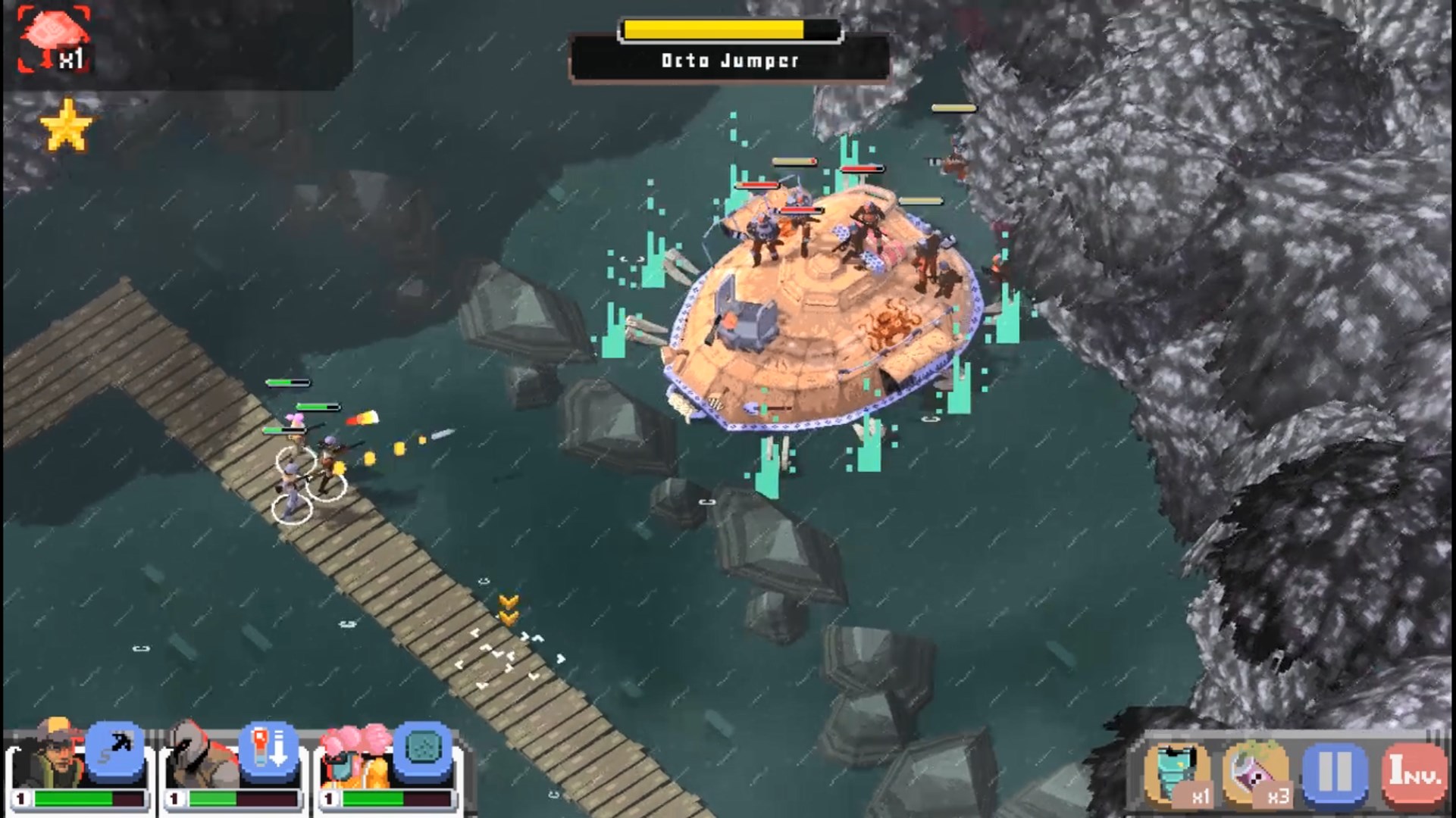 🔥🔥Управляйте отрядом изгоев в войне против влиятельного злодея Генерала Осьминога и его армии, угрожающей всему миру сразу. В этой быстрой тактической игре в реальном времени вам предстоит сражаться партизанскими методами, чтобы уничтожить восьминогую заразу. Деритесь прямо на ходу, перемещаясь на транспортере от острова к острову, отвоевывайте аванпосты, побеждайте боссов и их безумные октомашины. Задайте жару головоногим, но не забывайте, что они хорошо вооружены.🔥