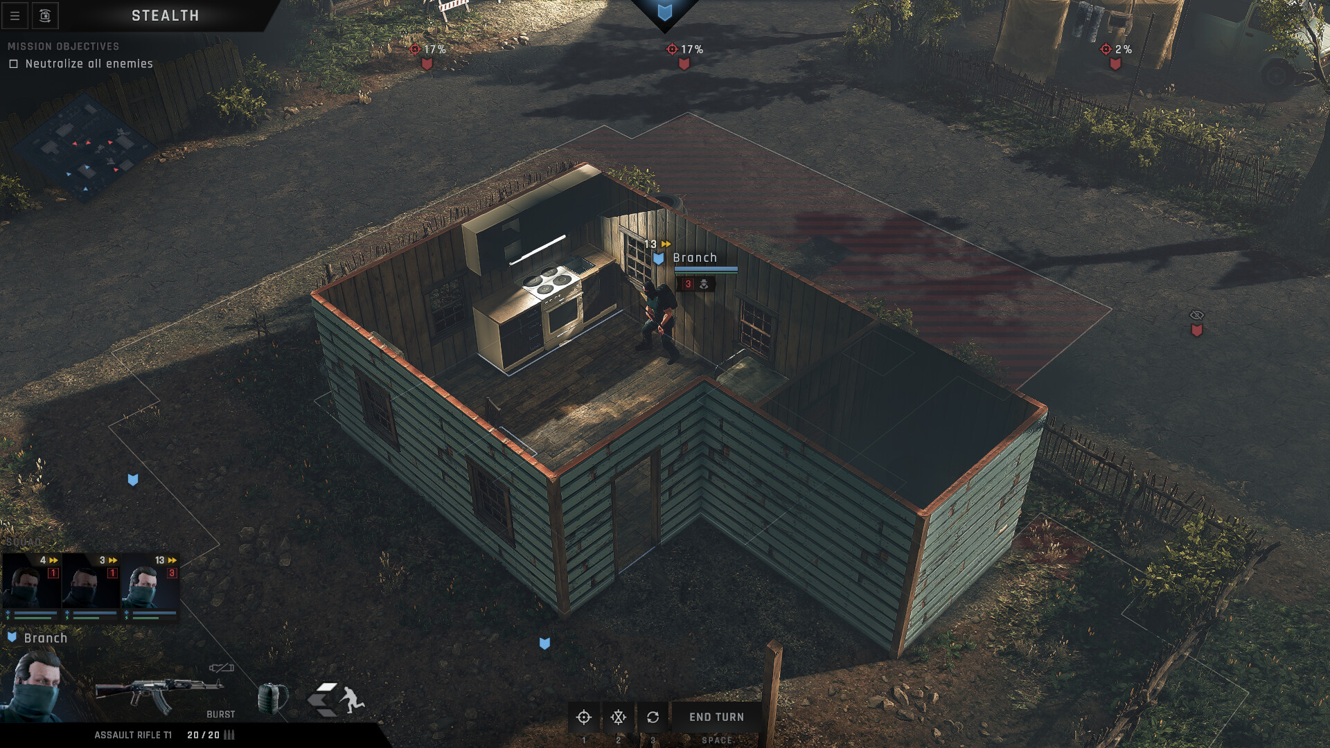 End State is a turn-based tactics game where you manage a mercenary company tracking down a terrorists in a war-torn country. Hire, gear up and gain experience for your mercenaries. Take on rebels and criminal gangs, do side contracts and explore Brekovia.