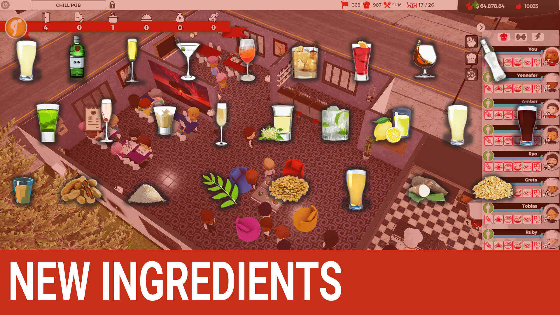 Пришло время выйти на новый уровень напитков с игрой Chef: Cocktails & Drinks! От фруктовых спиртных напитков до дорогого сливочного кофе - у вас появится огромный выбор новых вариантов, которые нежно опустят банковский счет ваших клиентов!