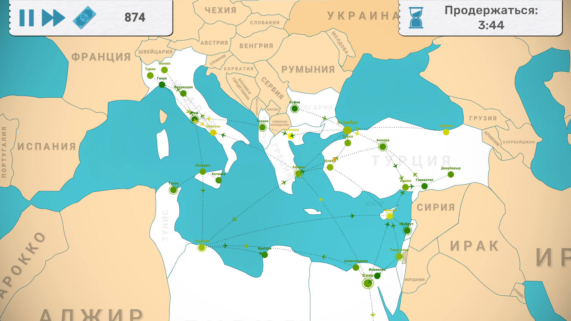 Развивайте свою авиационную транспортную сеть в разных городах и странах: стройте маршруты, запускайте новые самолёты, улучшайте самолеты и аэропорты!
