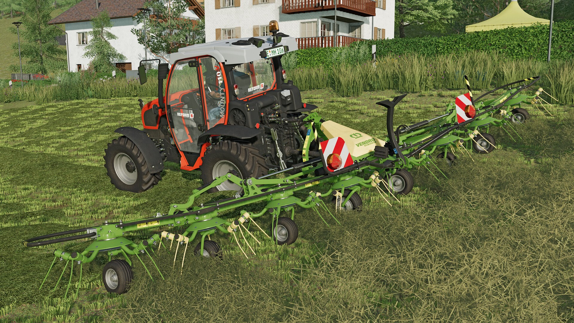 Получите 17 спецмашин и собирайте максимум сена и фуража! В наборе достоверные тракторы, сенокосилки, валковые жатки и прочее семи новых и нескольких имеющихся марок.