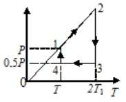 На графике изображен цикл с идеальным одноатомным газом неизменной массы количеством 2 моль. Представьте график цикла в координатах Р–V и определите количество теплоты, полученное газом за цикл, если параметры газа в состоянии 1 равныТ1 = 300 К, а давление Р1 = 10^5 Па.