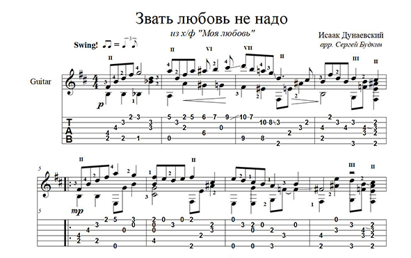 Аранжировка для гитары песни Исаака Дунаевского из кинофильма "Моя любовь".