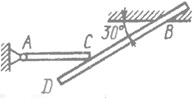 Однородный горизонтальный стержень АС, вес которого равен 180 Н, свободно опирается в точке С на балку ВД. Определить реакцию балки ВД на стержень АС.