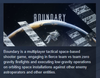 Boundary - это тактический космический шутер, в котором игроки играют роль хорошо вооруженных астронавтов, называемых астроператорами, участвуя в ожесточенных перестрелках в условиях невесомости и выполняя низкогравитационные операции на орбитальных космических объектах.