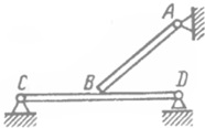 Однородная балка АВ, вес которой равен 4 кН, в точке В свободно опирается на горизонтальный стержень СД. Определить в кН реакцию подвижного цилиндрического шарнира Д, если размеры ВС = ВД. Весом стержня СД пренебречь.
