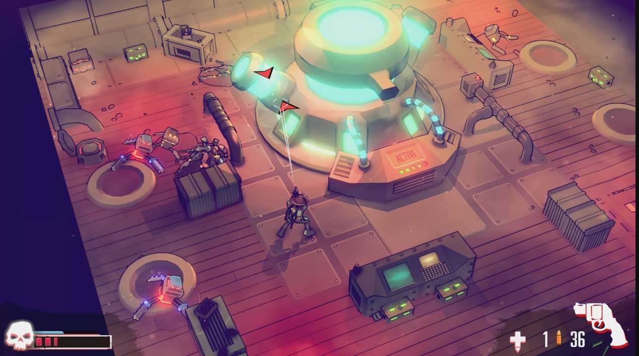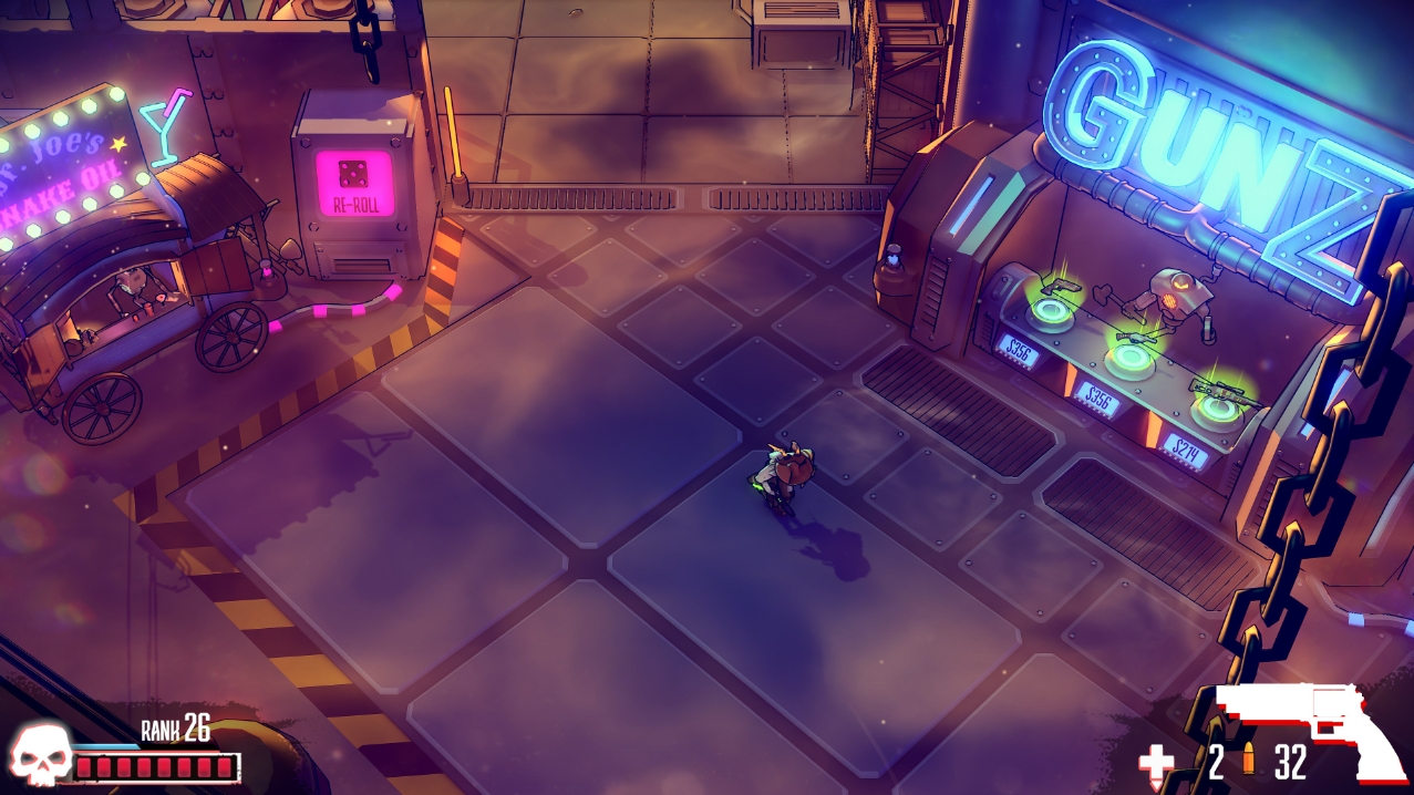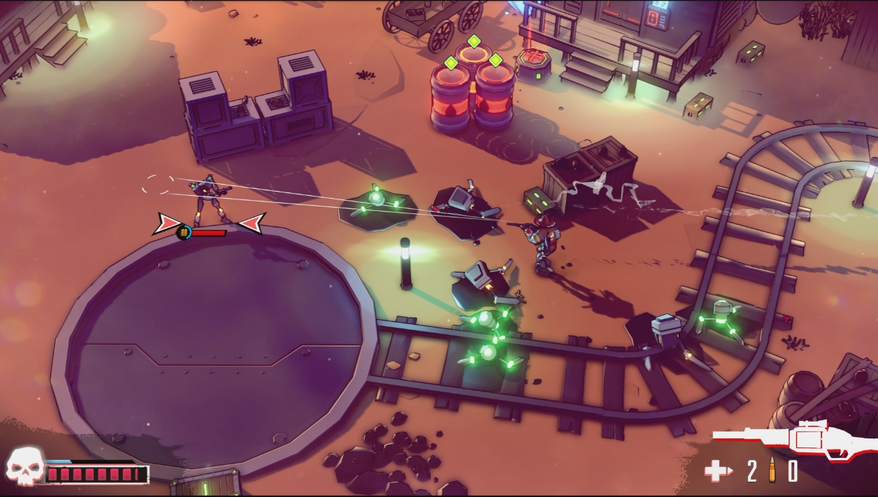 Смерть — это только начало в Dust & Neon, динамичном шутере с двумя джойстиками в жанре roguelite, действие которого происходит на постапокалиптическом Диком Западе, наводненном злодеями.