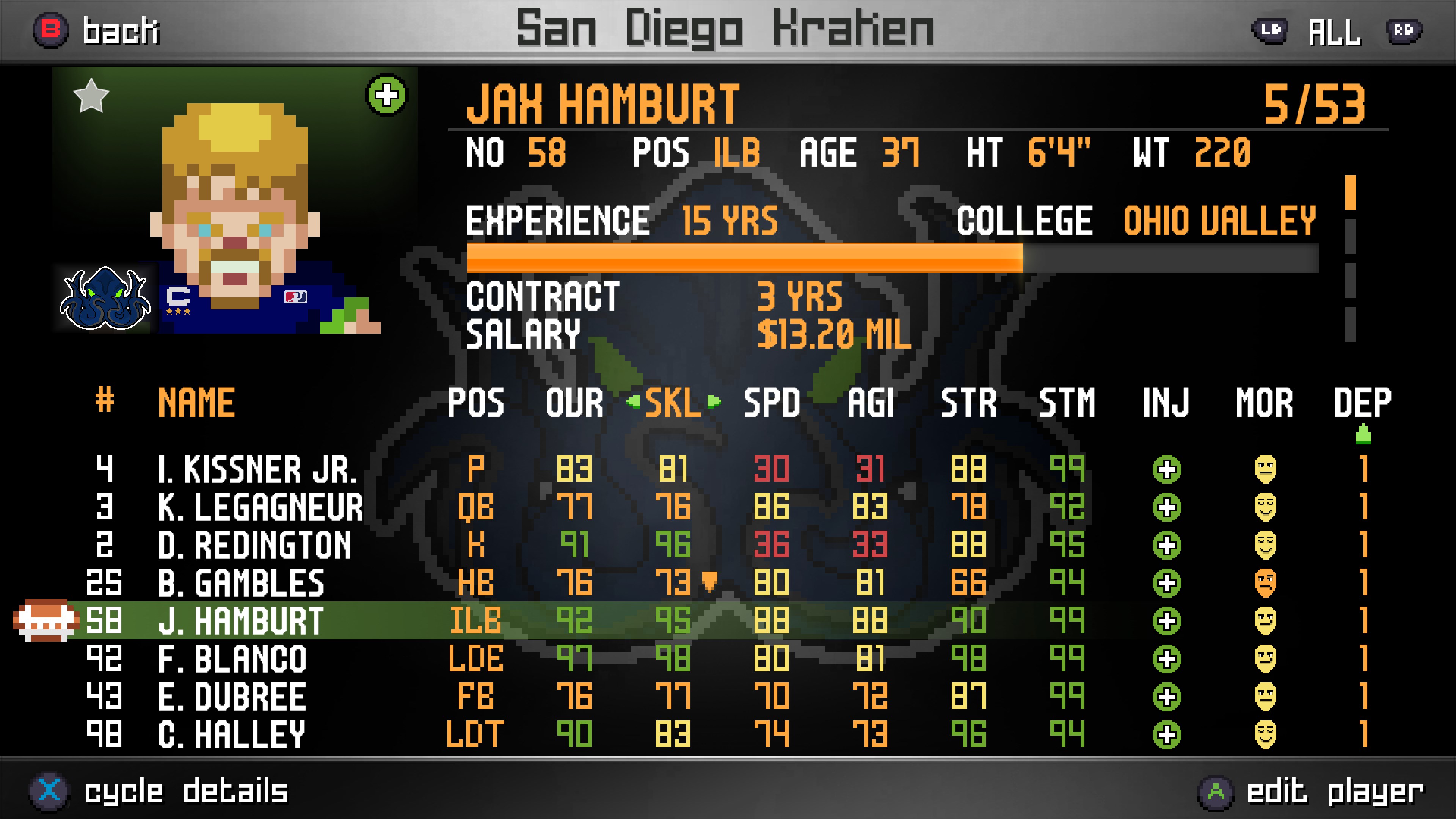 📜Подробное описание товара: Legend Bowl is a throwback to the classic 8-bit and 16-bit football games of the past. Take to the gridiron and fight your way to becoming a football legend! Enjoy sim-style gameplay, realistic weather, detailed stats, franchise mode, tournament mode, fully customizable rosters, and much much more!