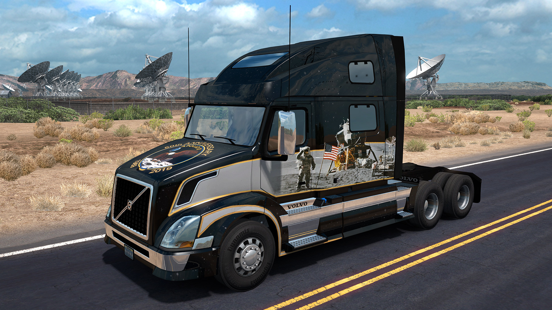 To celebrate the 50th anniversary of the Moon Landing, we are releasing a very special Space Paint Jobs Pack for American Truck Simulator, including a few unique accessory items for your truck cab. We are sure it´ll make your rig look out of this world.