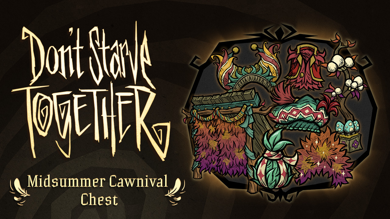 This Midsummer Cawnival Chest contains the following skin items: Cawnival Wrapping, Cawnival Shrub Hat, Cawnival Crown, Cawnival Lamp, Midsummer Frest, Cawnival Siesta Spot, and Cawnival Tammie.