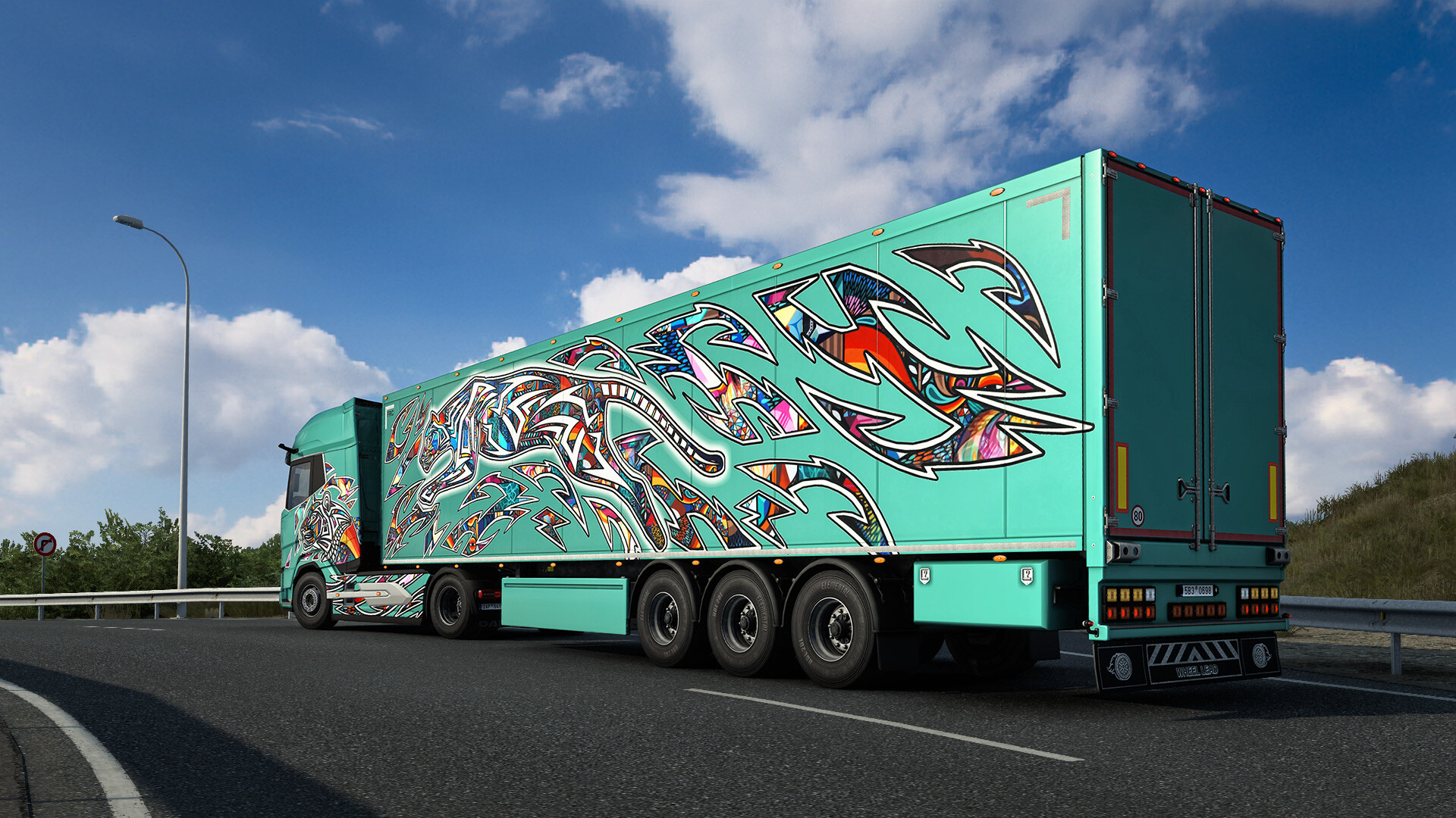 Freshen up your trucks with an original and modern livery. Introducing the Street Art Paint Jobs Pack, now available for all current truck models in Euro Truck Simulator 2 and to some of the ownable trailers as well!